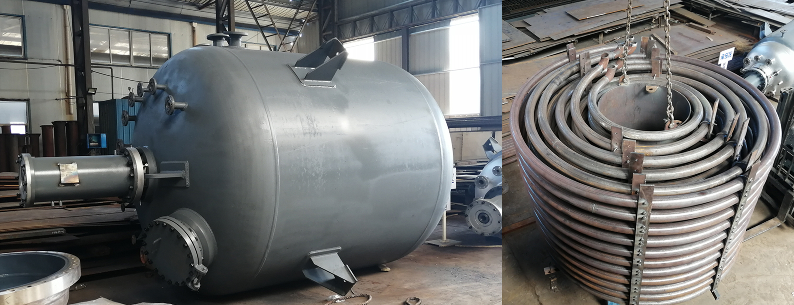 加氫反應(yīng)分為吸熱反應(yīng)和放熱反應(yīng),有些加氫反應(yīng)在反應(yīng)過程中會釋放大量的熱能。為了生產(chǎn)安全,并及時降低釜內(nèi)溫度,有些工藝要求釜內(nèi)配大面積的冷卻盤管。此時單層冷卻盤管無法滿足工藝要求,需要雙層或更多層盤管有效及時降溫。正威機械生產(chǎn)的6層盤管內(nèi)配吸氫攪拌槳,加…